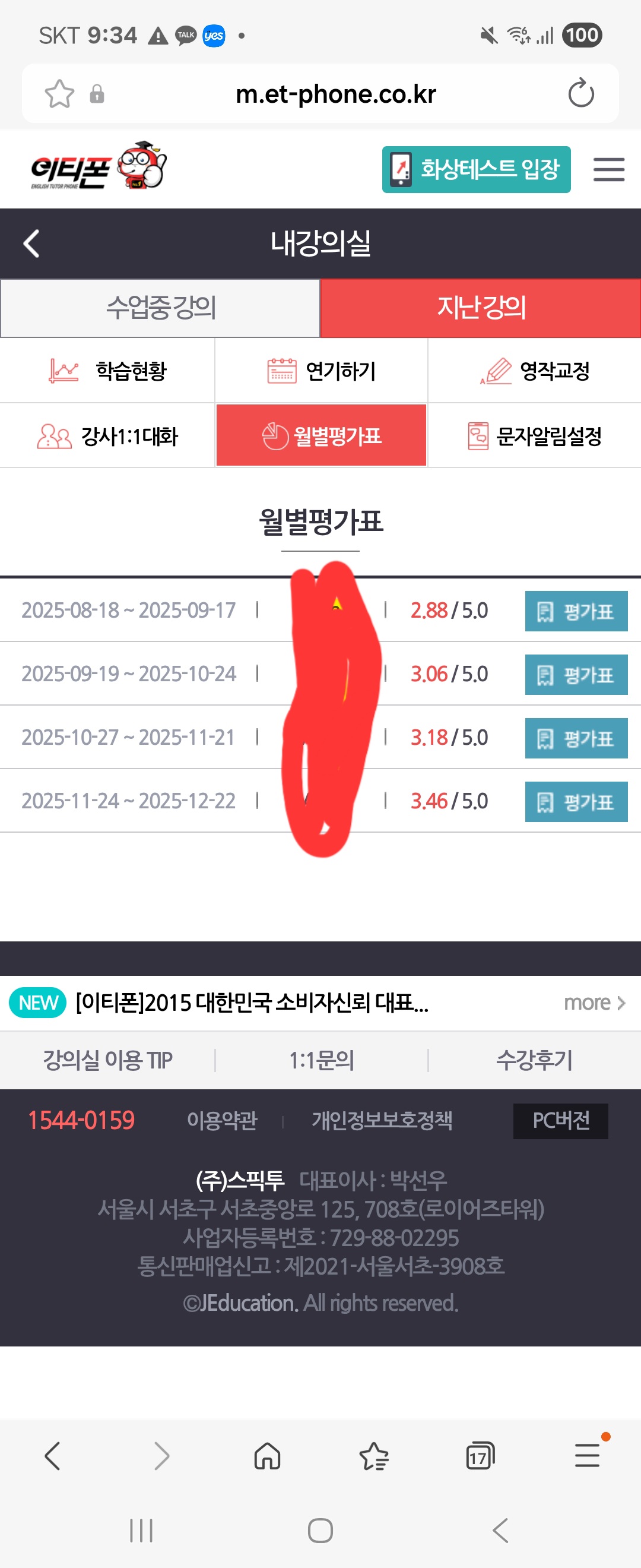 4개월간 쉬지 않고 꾸준히 해 왔습니다. 드라마틱한 변화보다는 말하는데 두려움이 없어졌다는 얘기를 합니다. 중등 올라 가기 전 학원 도움없이 문법 공부와 병행하고 밌습니다. 저는 회화가 주 목적이기 때문에 가능한지만 이 수업으로 영어 전반적인 수준이 모두 올랐다라고 말하기엔 어려움이 있을 것 같습니다. 집에서 읽기 쓰기 문법 공부는 개별로 하시되 회화가 필요하다 싶으면 추천드립니다. 이티폰은 요청 사항을 바로 적용해주셔서 이용하기 편리하네요. 재등록 예정입니다. 외고를 준비하는 친구들 중 외국에 거주했던 경험이 없으면 중등 때 꾸준히만 해도 도움이 될 것 같습니딘. 하지만 독해 문법 단어 등은 본인이 정말 꼭 챙겨야 하는 것 같아요. 저도 내년에는 아이와 함께 진행 해볼까 생각 중입니다. 막상 해외 여행을 앞두면 진즉 해볼 껄 하다가 놓치게 됩니다. 후기들 보면 오랜 시간 손 놓다가 시작하시는 성인분들도 계신 것 같아 용기 내 봅니다. 500자 후기 쓰기 어렵네요~ㅎ