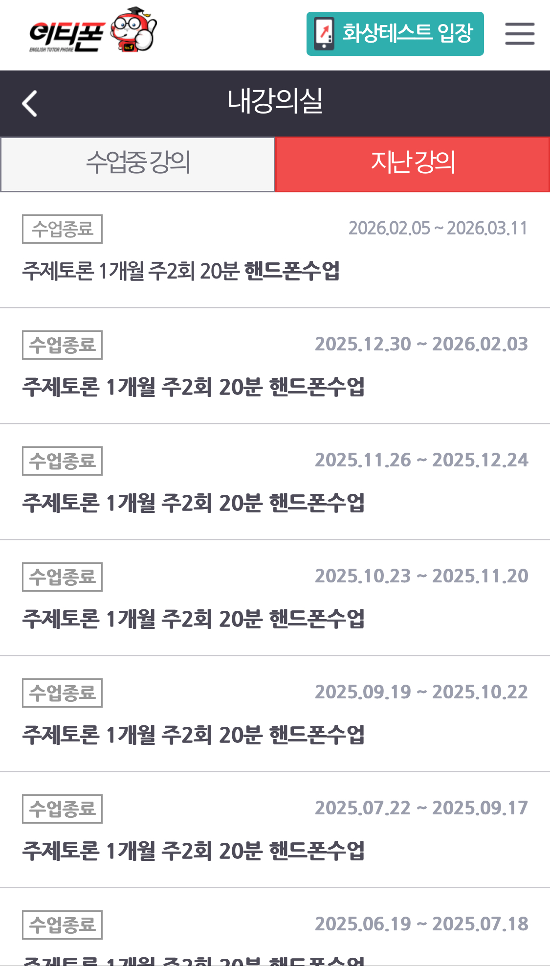 안녕하세요 회원님^^ 1년 동안 꾸준히 수강하시면서 실력뿐만 아니라 자신감까지 크게 향상되셨다니 정말 기쁘네요! 바쁜 직장 생활 속에서도 시간을 잘 활용해 수업 참여해주셔서 감사합니다. 앞으로도 이티폰 수업을 통해 더 자연스럽고 자신감 있게 영어 구사하게 되시길 응원하겠습니다! 감사합니다♡